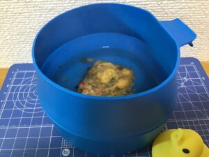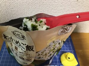 今回の失敗野営には夕食用にレトルトハンバーグ、朝食用にモンベルのリゾッタ チキンサラダを持って行きました。