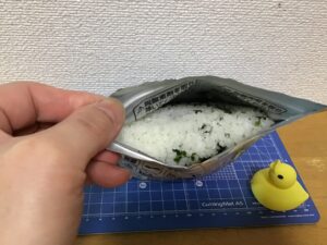 大きなスプーンは残りの米粒を掬い難い・・・・が、袋を手で持ってやれば問題なく全て食べ切る事が出来ました。